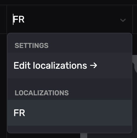 Select a paywall from the dashboard and click on EN to show the locale dropdown. Then click on Edit localizations ->: