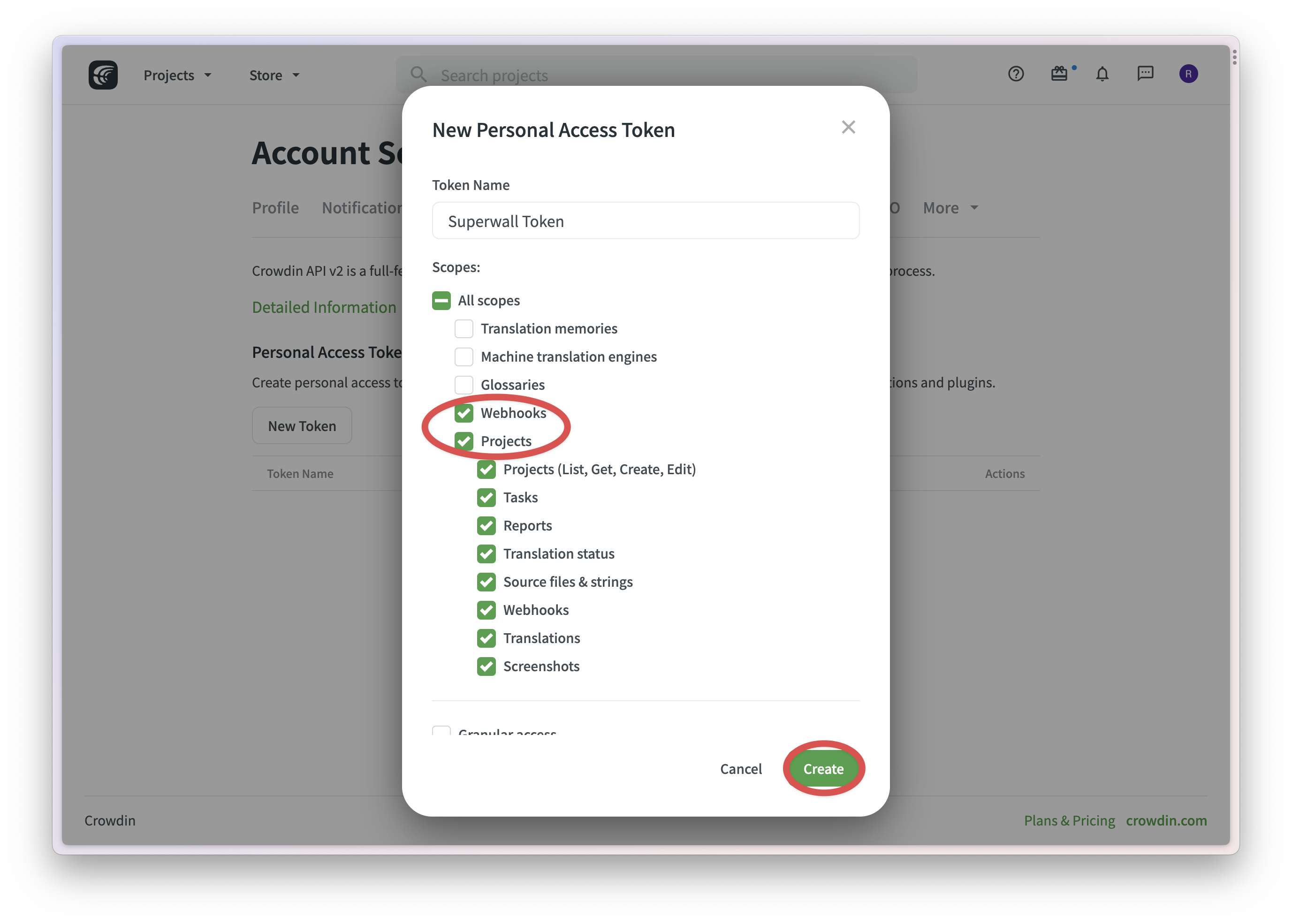 To set up Crowdin, you'll need to generate an API key.
